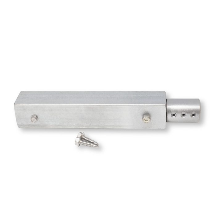Roll bar adapter for 5:1 and 10:1 gears. 5/8″ round shaft, adapts to 2.3″ aluminum roll bar, 1.5″ square steel insert